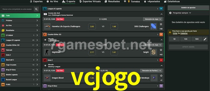 A aposta vcjogo oferece aos jogadores a experiência mais conveniente de apostas em eSports!